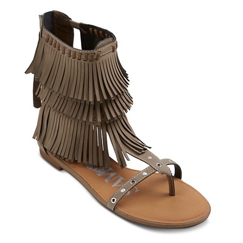 Gladiator sandals feature a T-strap with multiple straps going across the foot. In the past, most gladiator sandals were brown or black. However, now you shoes, but fringe every where - bags, clothes, etc. It's fringe year. ... Retrieve Here